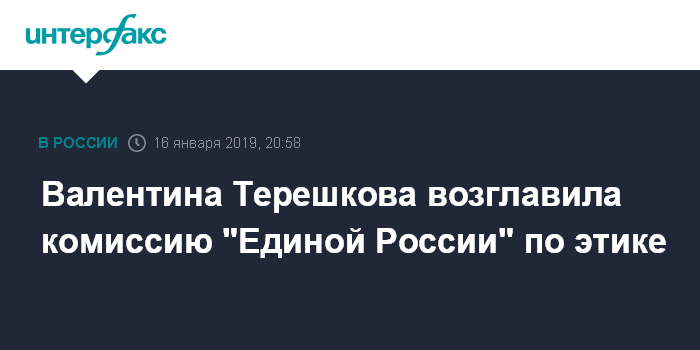 Валентина Терешкова возглавила комиссию "Единой России" по этике