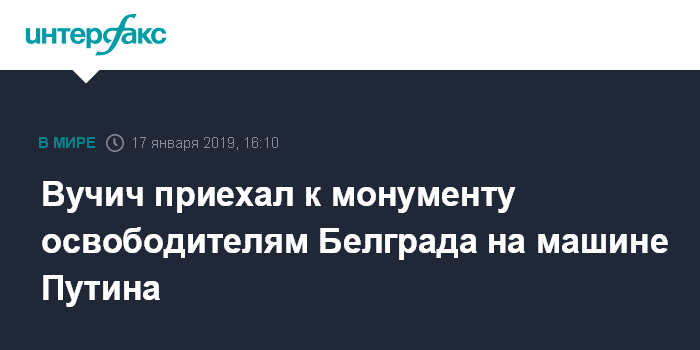 Москва. 17 января. INTERFAX.RU - Визит российского лидера Владимира Путина в Сербию начался с возложения цветов к монументу освободителям Белграда.