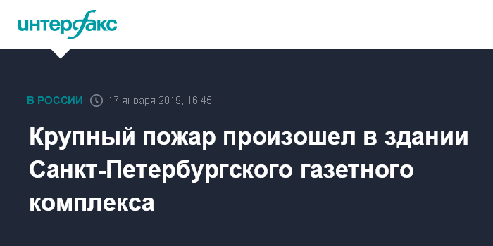 Крупный пожар произошел в здании Санкт-Петербургского газетного комплекса