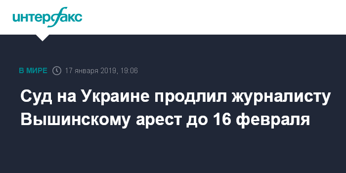 Суд на Украине продлил журналисту Вышинскому арест до 16 февраля