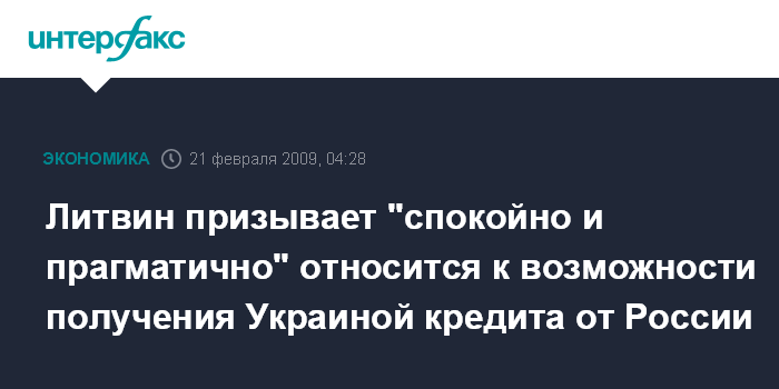 Киев. 21 февраля. ИНТЕРФАКС-УКРАИНА - Председатель Верховной рады Владимир Литвин призывает "спокойно и прагматично" относится к возможности получения Украиной кредита от России.