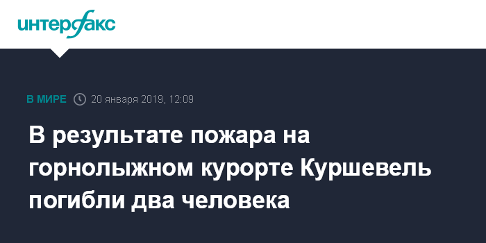 Москва. 20 января. INTERFAX.RU - Два человека стали жертвами пожара, произошедшего утром в воскресенье на горнолыжном курорте Куршевель во французских Альпах, сообщает в воскресенье газета Le Monde со ссылкой на местные власти.