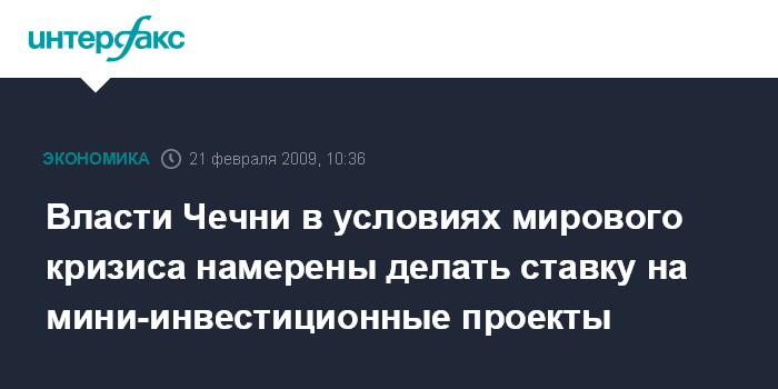 Грозный. 21 февраля. INTERFAX.RU - Президент Чеченской республики Рамзан Кадыров считает необходимым в условиях мирового финансового кризиса уделить особое внимание мини-проектам, не требующим больших капитальных вложений.