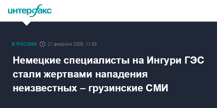 Тбилиси. 21 февраля. INTERFAX.RU - Вооруженные преступники совершили разбойное нападение на группу немецких инженеров, проводивших ремонтные работы на территории Ингури ГЭС, сообщили в субботу грузинские СМИ.