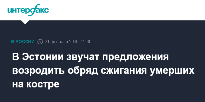 Таллин. 21 февраля. INTERFAX.RU - Древний языческий обряд сжигания тел умерших на костре хотят возродить в Эстонии.