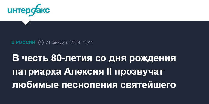 В честь 80-летия со дня рождения патриарха Алексия II прозвучат любимые песнопения святейшего