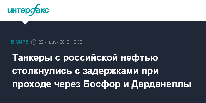 Москва. 22 января. INTERFAX.RU - Нефтяные танкеры, перевозящие российскую и казахстанскую нефть из черноморских портов, сталкиваются с серьезными задержками при проходе через ключевые турецкие проливы, что застопорило доставку миллионов баррелей сырья нефтеперерабатывающим предприятиям средиземноморского региона.
