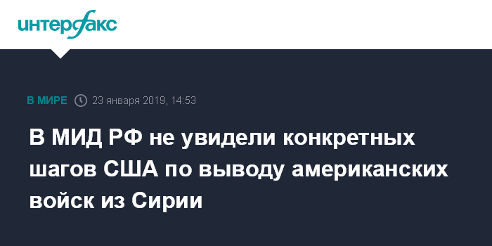 Москва. 23 января. INTERFAX.RU - США не принимают конкретных мер по выводу своих войск из Сирии, заявила в среду официальный представитель МИД РФ Мария Захарова.