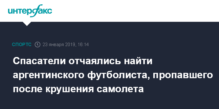 28-летний аргентинский нападающий был единственным пассажиром легкомоторного самолета, который пропал с радаров вечером 21 января в районе Нормандских островов в Ла-Манше.