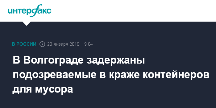 Москва. 23 января. INTERFAX.RU - В разгар кризиса с вывозом бытовых отходов в Волгограде два горожанина стали фигурантами уголовного дела о краже баков для мусора, сообщает управление МВД РФ по региону в среду.