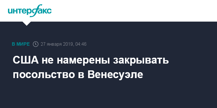 Москва. 27 января. INTERFAX.RU - Госдепартамент США заявил, что не планирует закрывать американское посольство в Венесуэле и будет продолжать защищать безопасность и интересы американцев, сообщило агентство Associated Press.