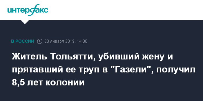Москва. 28 января. INTERFAX.RU - Автозаводский районный суд Тольятти в понедельник вынес приговор местному жителю, который убил жену из ревности и спрятал ее труп в "Газели".