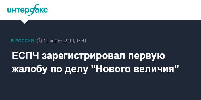 ЕСПЧ зарегистрировал первую жалобу по делу "Нового величия"