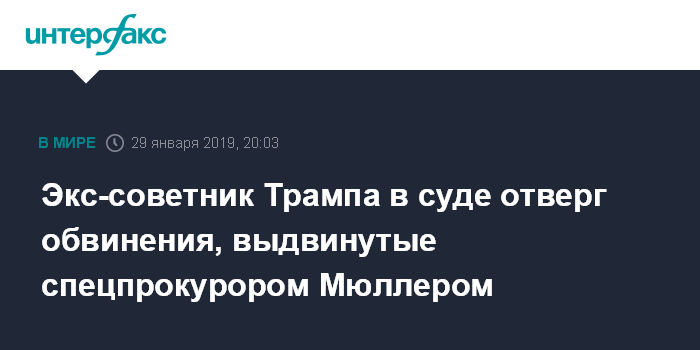 Экс-советник Трампа в суде отверг обвинения, выдвинутые спецпрокурором Мюллером