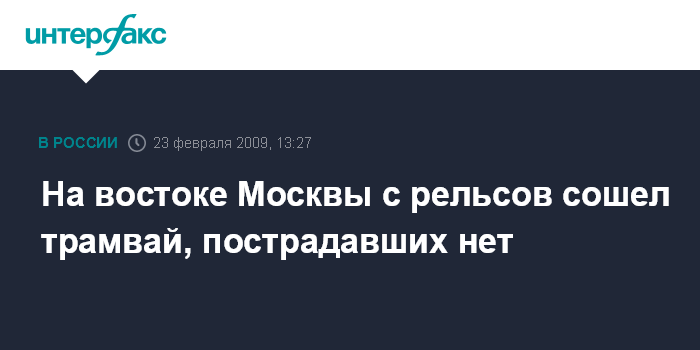 Москва. 23 февраля. INTERFAX.RU - В Москве в Восточном административном округе с рельсов на полном ходу сошел трамвай.