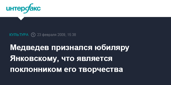 Президент отметил, что яркие образы, созданные О.Янковским на сцене и на экране, по праву завоевали любовь нескольких поколений зрителей. Глава государства отметил, что и себя относит к числу поклонников творчества юбиляра. Д.Медведев выразил надежду, что талантом О.Янковского будут наслаждаться еще многие любители театра и кино.