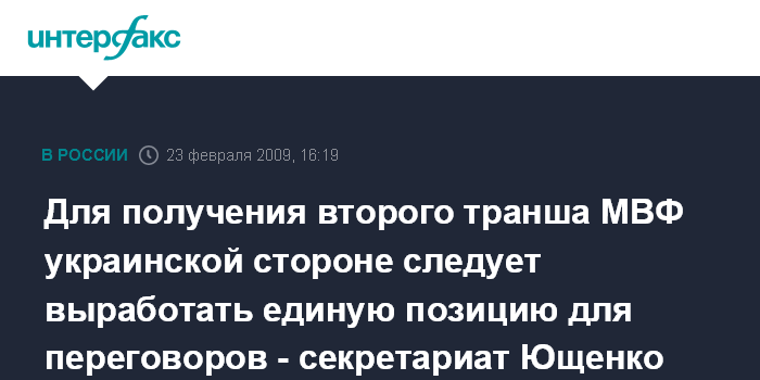 Для получения второго транша МВФ украинской стороне следует выработать единую позицию для переговоров - секретариат Ющенко