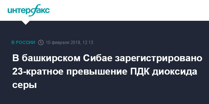 В башкирском Сибае зарегистрировано 23-кратное превышение ПДК диоксида серы