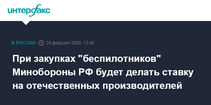 "Мы хотим посмотреть, что имеют наши западные партнеры и что имеем мы. Но в массовом количестве закупать беспилотные летательные аппараты у иностранных производителей мы не предусматриваем", - заявил Макаров журналистам на выставке "АЙДЕКС-2009". При этом он подчеркнул, что "акцент все равно будет сделан на закупки отечественных беспилотных летательных аппаратов".