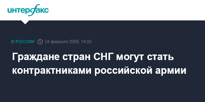 Москва. 24 февраля. INTERFAX.RU - Российское законодательство предоставляет возможность иностранным гражданам из государств Содружества проходить военную службу по контракту в Вооруженных силах РФ, заявил во вторник агентству "Интерфакс-АВН" статс-секретарь - замминистра обороны генерал армии Николай Панков. "Соответствующее законодательное решение принято, такое право у граждан СНГ есть, но это должно быть их личное решение", - сказал он.