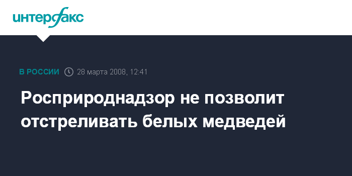 Москва. 28 марта. INTERFAX.RU - Глава Росприроднадзора Владимир Кириллов поручил своим подчиненным в Архангельске обратиться в областную прокуратуру и потребовать, чтобы приказ об отстреле белых медведей был признан нелегитимным, говорится в сегодняшнем пресс-релизе ведомства.