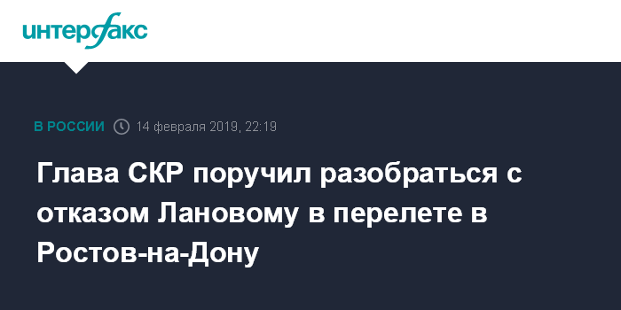 Глава СКР поручил разобраться с отказом Лановому в перелете в Ростов-на-Дону