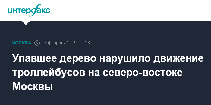 Москва. 15 февраля. INTERFAX.RU - Упавшее дерево в пятницу утром повредило контактную сеть троллейбусов на Ярославском шоссе, на северо-востоке Москвы.