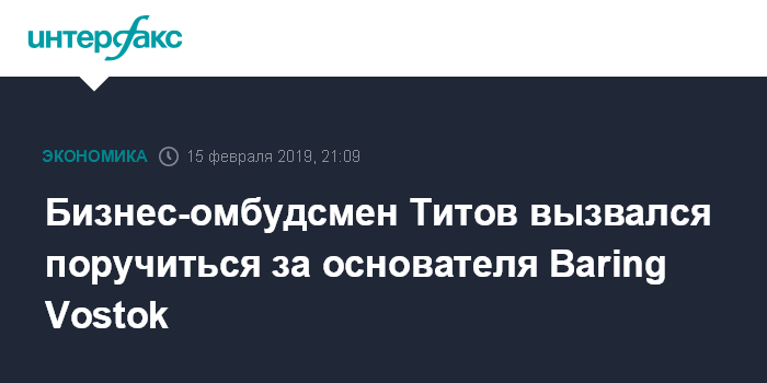 Бизнес-омбудсмен Титов вызвался поручиться за основателя Baring Vostok