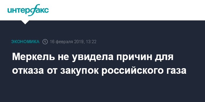 Москва. 16 февраля. INTERFAX.RU - Канцлер Германии Ангела Меркель считает, что зависимость от российского газа, о которой говорят критики строительства газопровода Nord Stream 2 ("Северный поток-2") - это плохо, но CCCР поставлял газ и во время холодной войны, причем поставки шли регулярно.