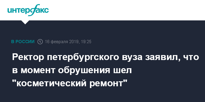 Ректор петербургского вуза заявил, что в момент обрушения шел "косметический ремонт"