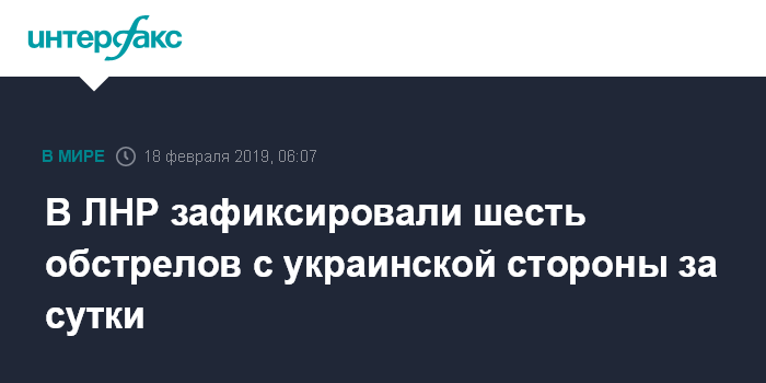 Москва. 18 февраля. INTERFAX.RU - Вооруженные силы Украины шесть раз за прошедшие сутки нарушили режим прекращения огня в Донбассе, сообщили "Интерфаксу" в представительстве самопровозглашенной Луганской народной республики (ЛНР) в Совместном центре по контролю и координации режима прекращения огня (СЦКК).