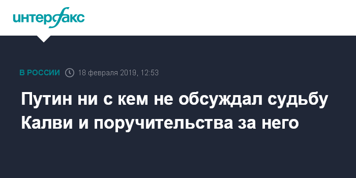 Путин ни с кем не обсуждал судьбу Калви и поручительства за него