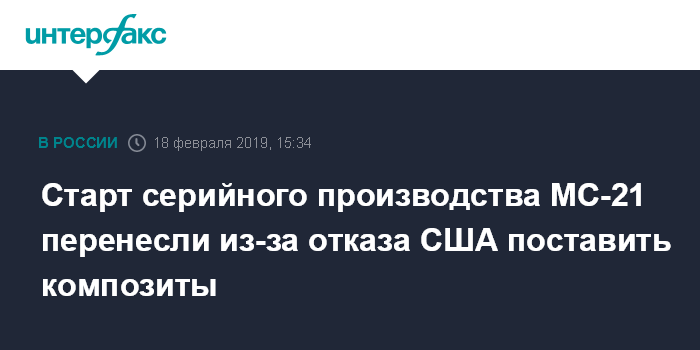 Старт серийного производства МС-21 перенесли из-за отказа США поставить композиты