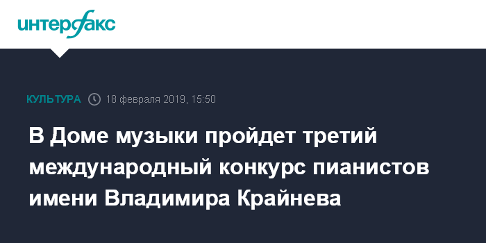 Москва. 18 февраля. INTERFAX.RU - С 26 марта по 1 апреля в Московском международном Доме музыки пройдет заключительный этап международного конкурса пианистов имени народного артиста СССР Владимира Крайнева.