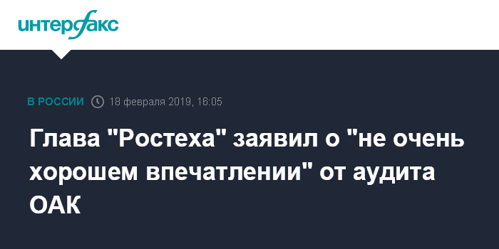 Москва. 18 февраля. INTERFAX.RU - Глава "Ростеха" Сергей Чемезов заявил о "не очень хорошем впечатлении" от аудита ПАО "Объединенная авиастроительная корпорация" (ОАК).