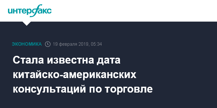 Москва. 19 февраля. INTERFAX.RU - Очередной - седьмой - раунд консультаций между КНР и США по урегулированию торговых разногласий состоится в Вашингтоне 21-22 февраля, сообщило во вторник министерство коммерции Китая.