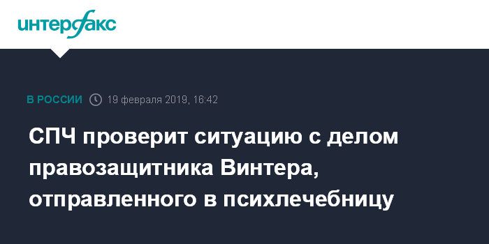 СПЧ проверит ситуацию с делом правозащитника Винтера, отправленного в психлечебницу