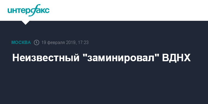 Москва. 19 февраля. INTERFAX.RU - Анонимное сообщение об угрозе взрыва на ВДНХ поступило около 17:00 по каналам экстренной службы города Москва, сообщил "Интерфаксу" во вторник источник, знакомый с ситуацией.