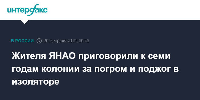 Москва. 20 февраля. INTERFAX.RU - Суд в Ямало-Ненецком автономном округе вынес приговор местному жителю, который, находясь под стражей в изоляторе временного содержания, устроил там погром, поджог и ударил сотрудников изолятора.