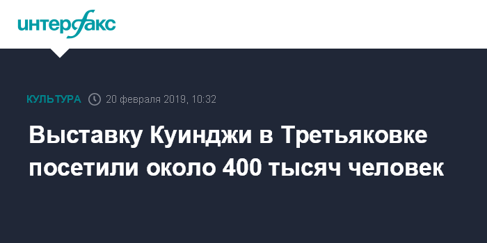 Москва. 20 февраля. INTERFAX.RU - Выставку картин Архипа Куинджи в Третьяковской галерее за четыре месяца посетили почти 400 тысяч человек.
