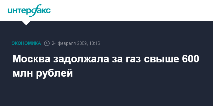 Москва задолжала за газ свыше 600 млн рублей