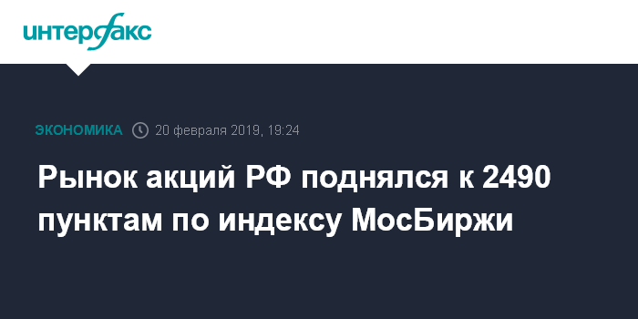 Москва. 20 февраля. INTERFAX.RU - Рынок акций РФ в среду вырос после выступления президента Владимира Путина с ежегодным посланием к Федеральному собранию, а также на фоне позитивной динамики мировых фондовых площадок; индекс МосБиржи поднялся к 2490 пунктам во главе с обновившими исторические максимумы бумагами "Норникеля" .