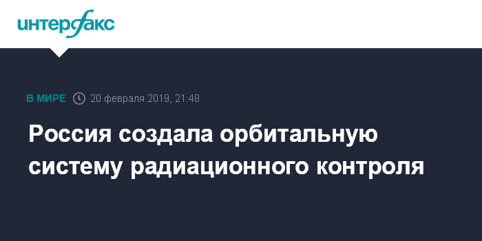 Москва. 20 февраля. INTERFAX.RU - Система контроля солнечной и космической радиации создана на российской орбитальной группировке, сообщает "Роскосмос".