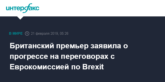 Москва. 21 февраля. INTERFAX.RU - Премьер-министр Великобритании Тереза Мэй заявила, что ей удалось добиться прогресса на переговорах с председателем Еврокомиссии (ЕК) Жан-Клодом Юнкером по Brexit.