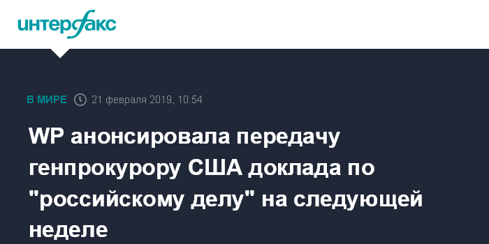 Москва. 21 февраля. INTERFAX.RU - Расследование предполагаемого вмешательства России в американские выборы президента 2016 года подходит к концу, доклад о нем может быть готов в ближайшие дни, сообщает в четверг газета The Washington Post.