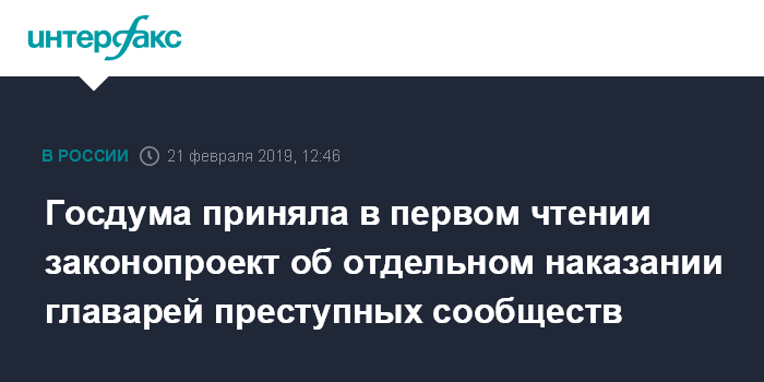 Москва. 21 февраля. INTERFAX.RU - Госдума на заседании в четверг приняла в первом чтении президентский законопроект об уголовном наказании для создателей и участников организованных преступных сообществ (ОПС).