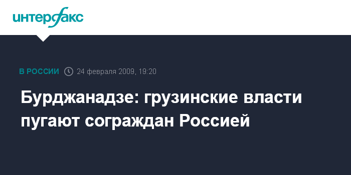 Тбилиси. 24 февраля. INTERFAX.RU- Лидер движения "Единая Грузия", экс-спикер парламента Нино Бурджанадзе считает, что власти страны целенаправленно спекулируют темой "российской угрозы".