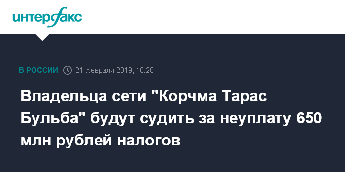 Владельца сети "Корчма Тарас Бульба" будут судить за неуплату 650 млн рублей налогов