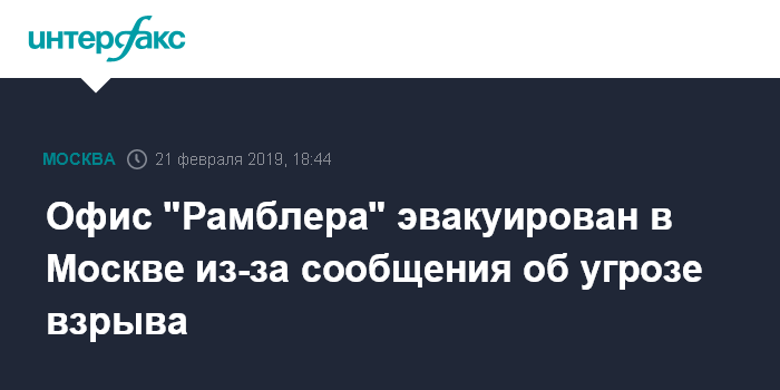 Офис "Рамблера" эвакуирован в Москве из-за сообщения об угрозе взрыва