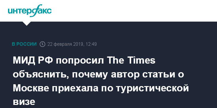 МИД РФ попросил The Times объяснить, почему автор статьи о Москве приехала по туристической визе